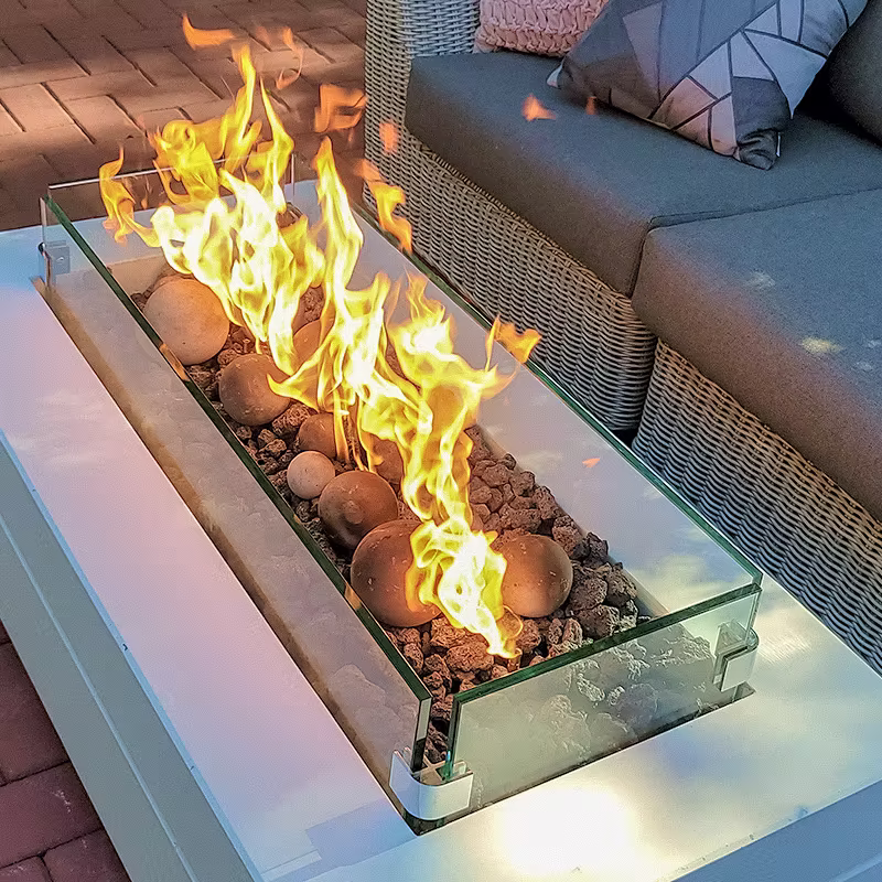 We only use ceramic, refractory or tempered glass products for use in firepits. This is for safe operation. Real rock or regular glass can fracture and explode.
