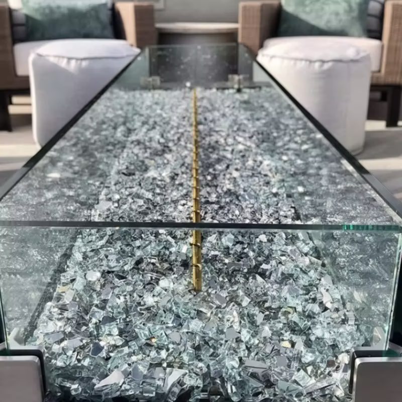 We only use ceramic, refractory or tempered glass products for use in firepits. This is for safe operation. Real rock or regular glass can fracture and explode.